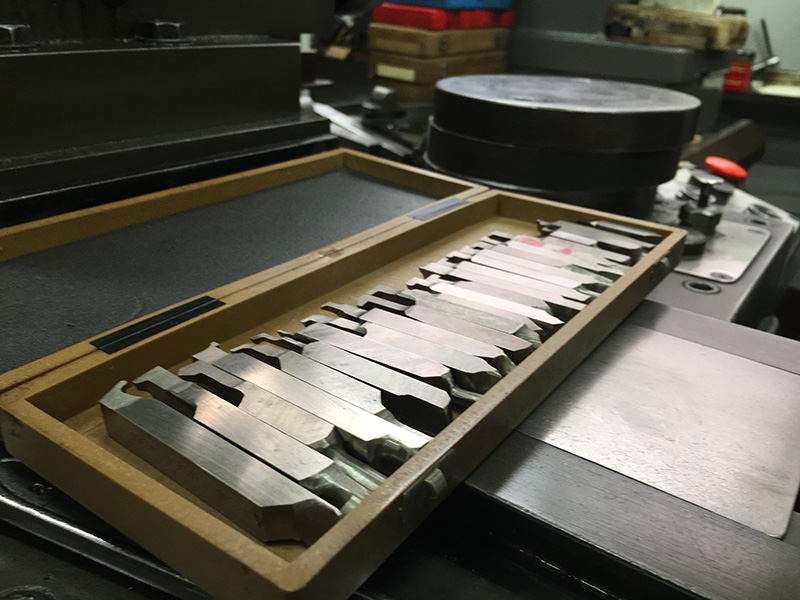 金型製品部の様々な形状を手作業で磨いております。